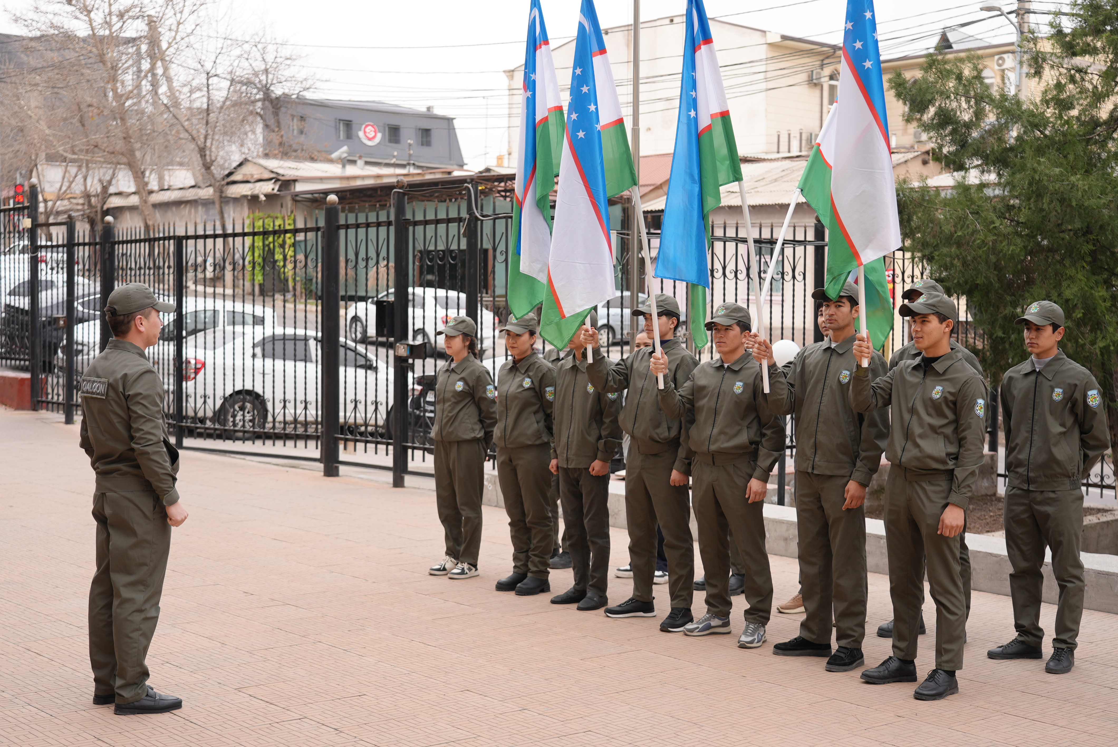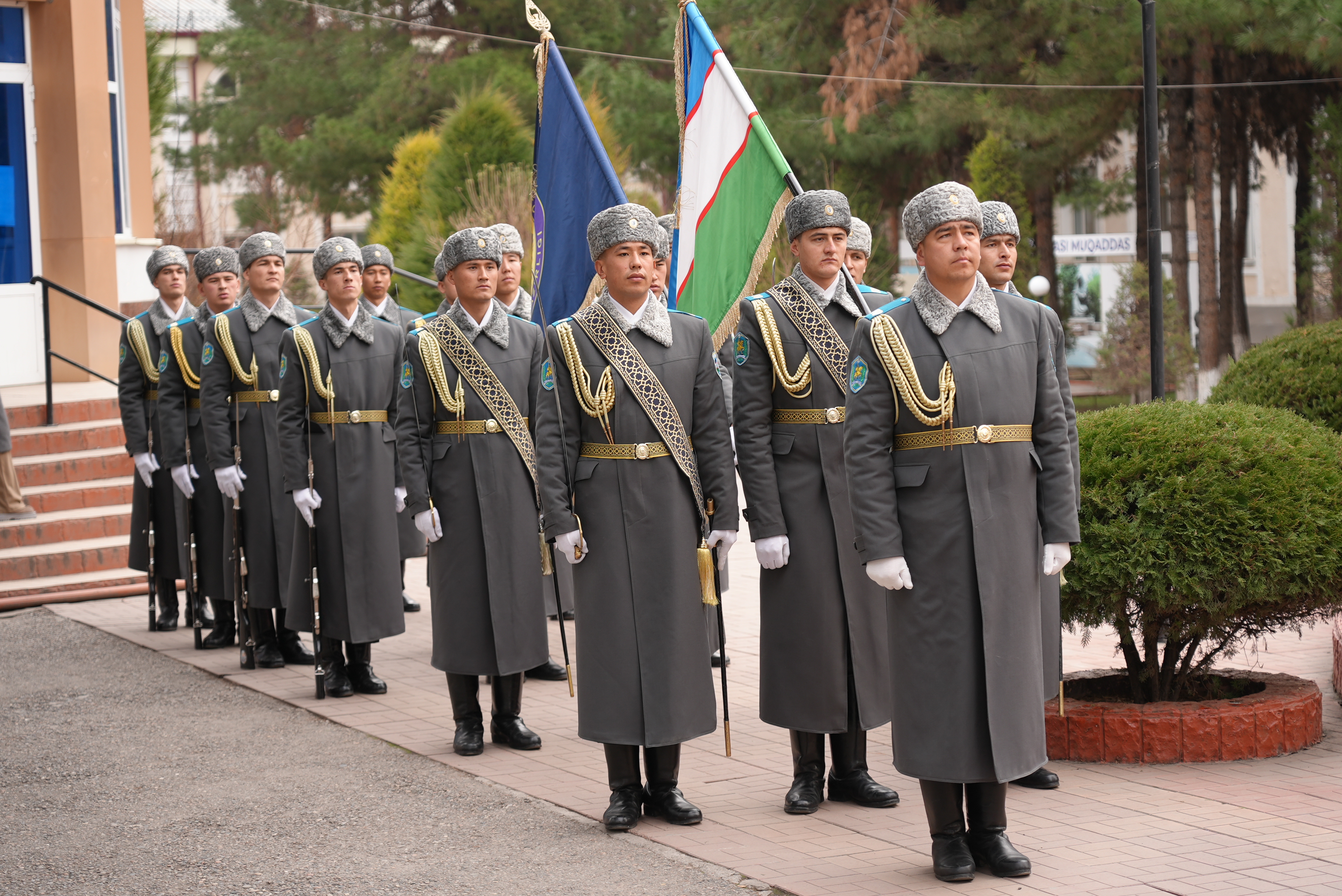 Harbiylarni institutning birinchi prorektori Baxtiyor Nasimov boshchiligidagi jamoatchilik vakillari tantanali ravishda kutib oldilar.