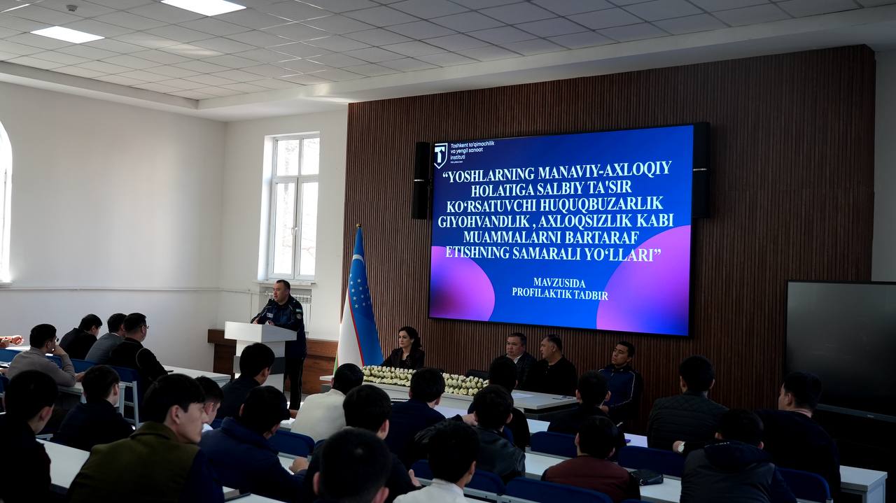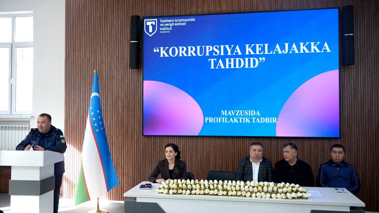 Toshkent tuqimachilik va yengil sanoat instituti Iqtisodiyot fakultetida “Korrupsiya — kelajakka tahdid” va “Huquqbuzarlik va jinoyatchilikni oldini olish” mavzularida profilaktik tadbir o‘tkazildi.