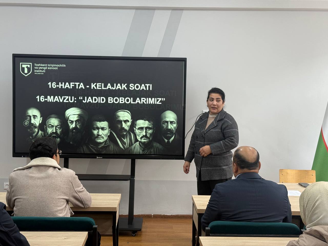 Toshkent to‘qimachilik va yengil sanoat institutining barcha fakultetlarida “Kelajak soati” rukni doirasida “Jadid bobolarimiz” mavzusidagi 16-“Ma’rifat darsi” tashkil etildi