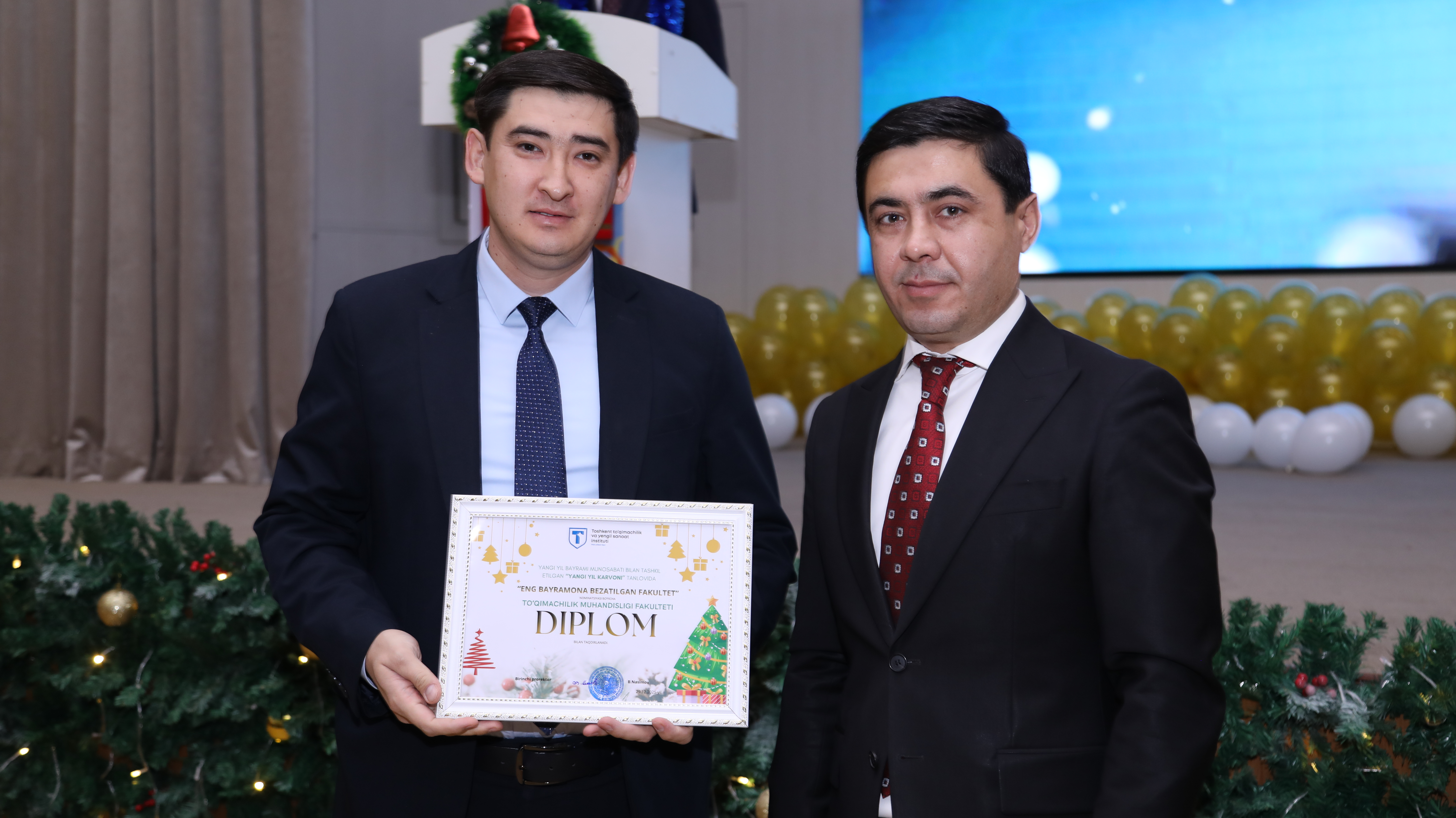 Yangi yil munosabati bilan tashkil etilgan bayram tadbirlari yuqori saviyada va ko‘tarinki ruhda o‘tkazildi. Mazkur tadbir institut jamoasi hamda talaba-yoshlar uchun quvonchli va unutilmas lahzalarga boy bo‘ldi.
