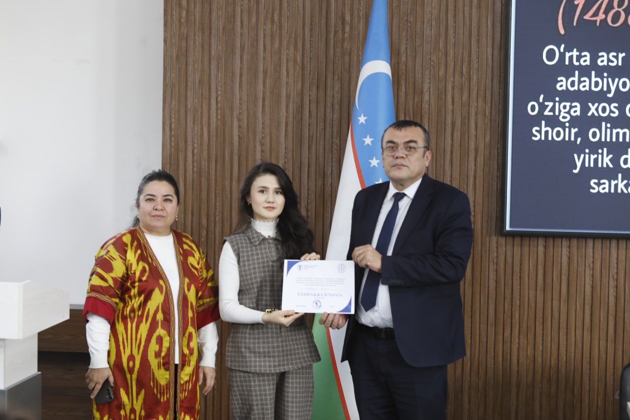 Dizayn va texnologiyalar fakulteti tashabbusi bilan 13-fevral kuni o‘tkazilgan mazkur tadbirda Alisher Navoiy nomidagi Toshkent davlat o‘zbek tili va adabiyoti universiteti O‘zbek tili va adabiyoti kafedrasi dotsenti Hoshimjon Axmedov, institutning Yoshlar bilan ishlash, ma’naviyat va ma’rifat bo‘limi boshlig‘i Shuxrat Xushvaqtov hamda professor-o‘qituvchilar ishtirok etdilar.
