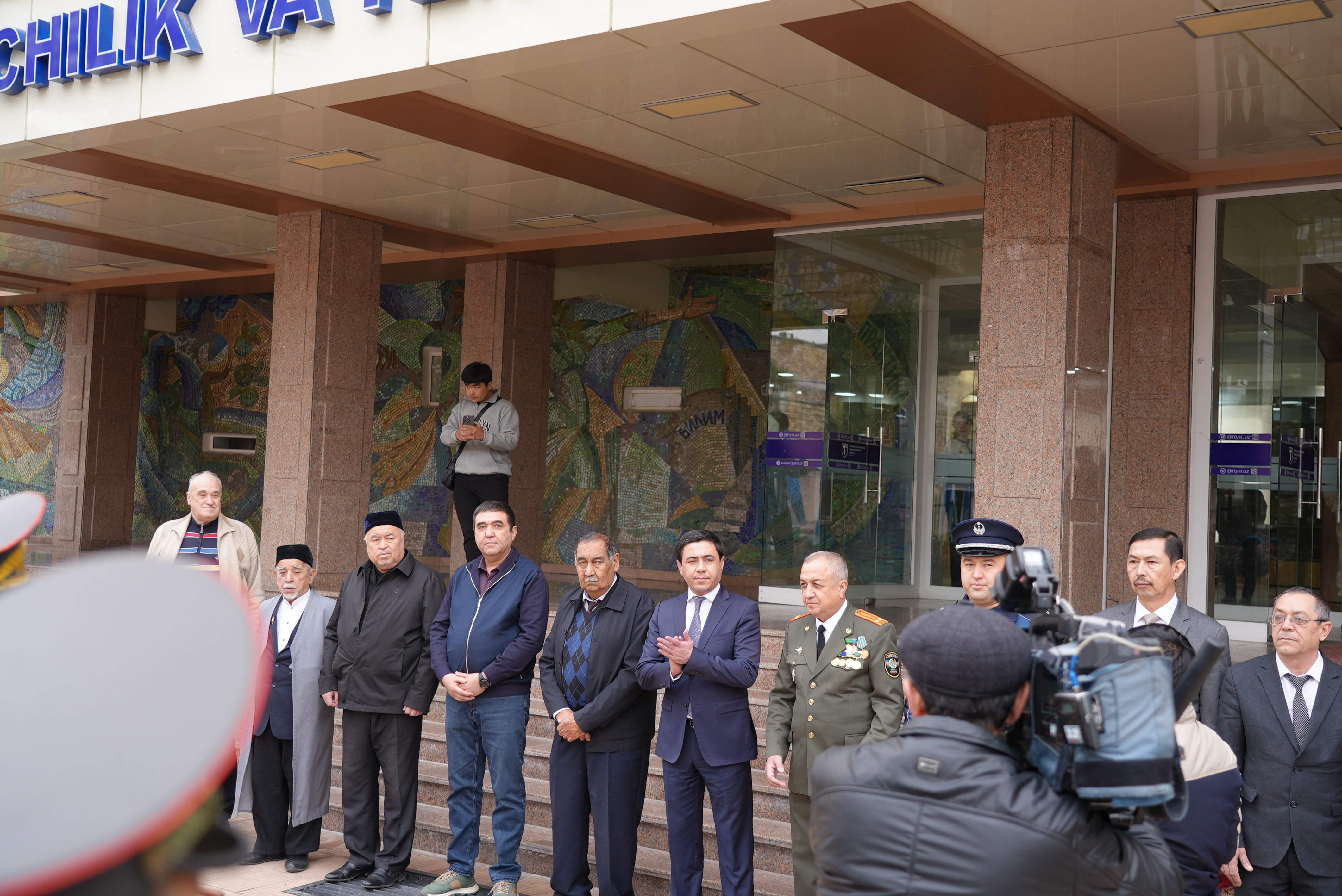 Harbiylarni institutning birinchi prorektori Baxtiyor Nasimov boshchiligidagi jamoatchilik vakillari tantanali ravishda kutib oldilar.