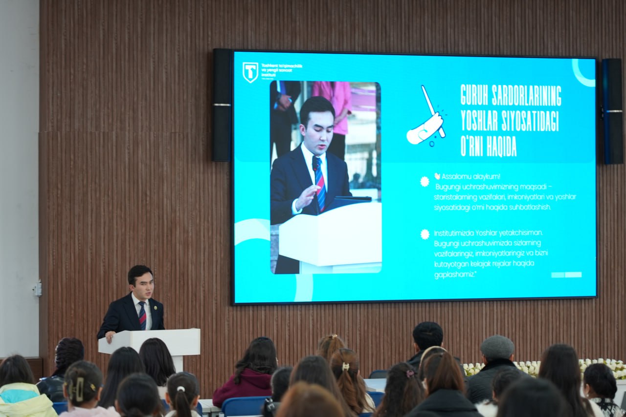 Toshkent to‘qimachilik va yengil sanoat instituti Yoshlar masalalari bo‘yicha rektor maslahatchisi — Yoshlar yetakchisi Surxonbek Xo‘jamurodov tomonidan guruh sardorlari ishtirokida maxsus uchrashuv o‘tkazildi.